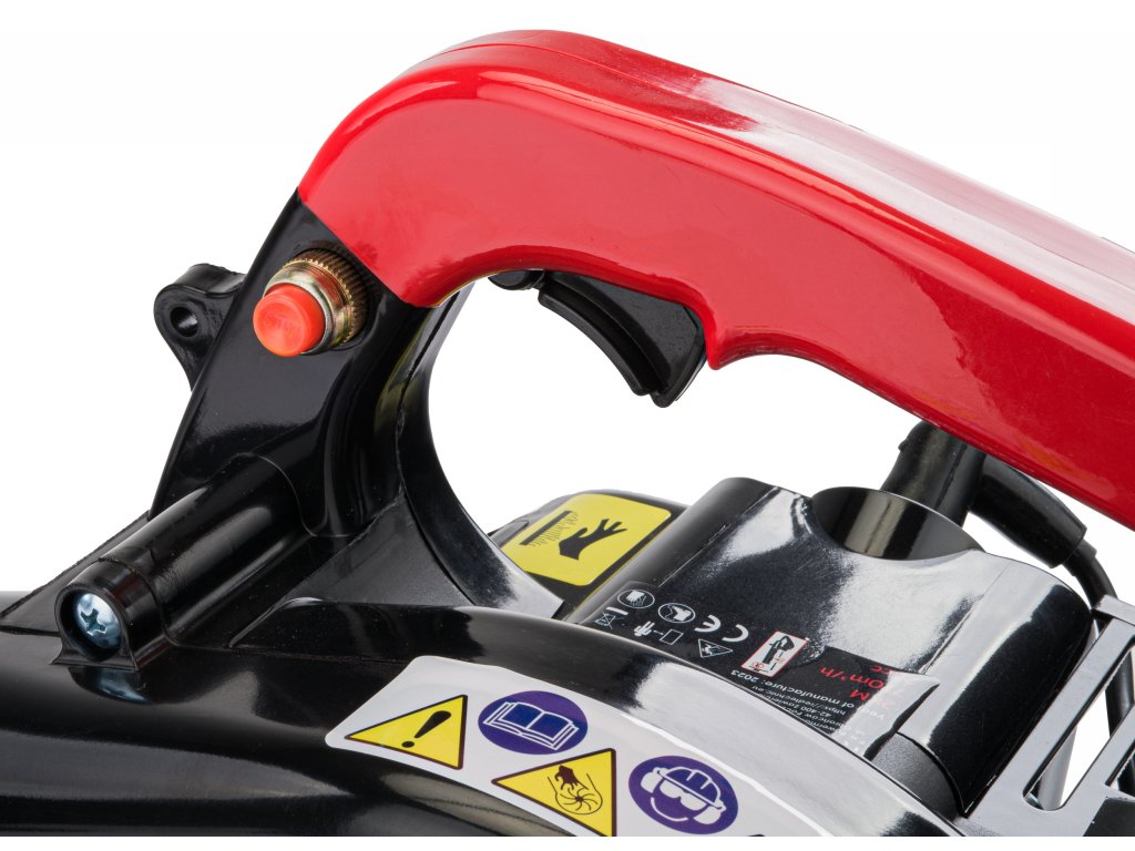A kézi üzemeltetésű fogantyú egy indítógombbal van felszerelve, amely növeli a motor fordulatszámát, és erős levegőáramot hoz létre. Ezenkívül a fogantyú motorleállító funkcióval is rendelkezik a könnyű irányítás érdekében.