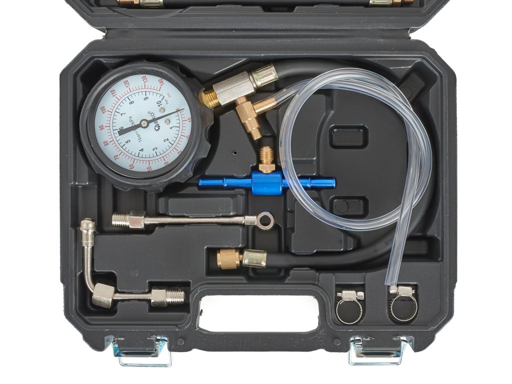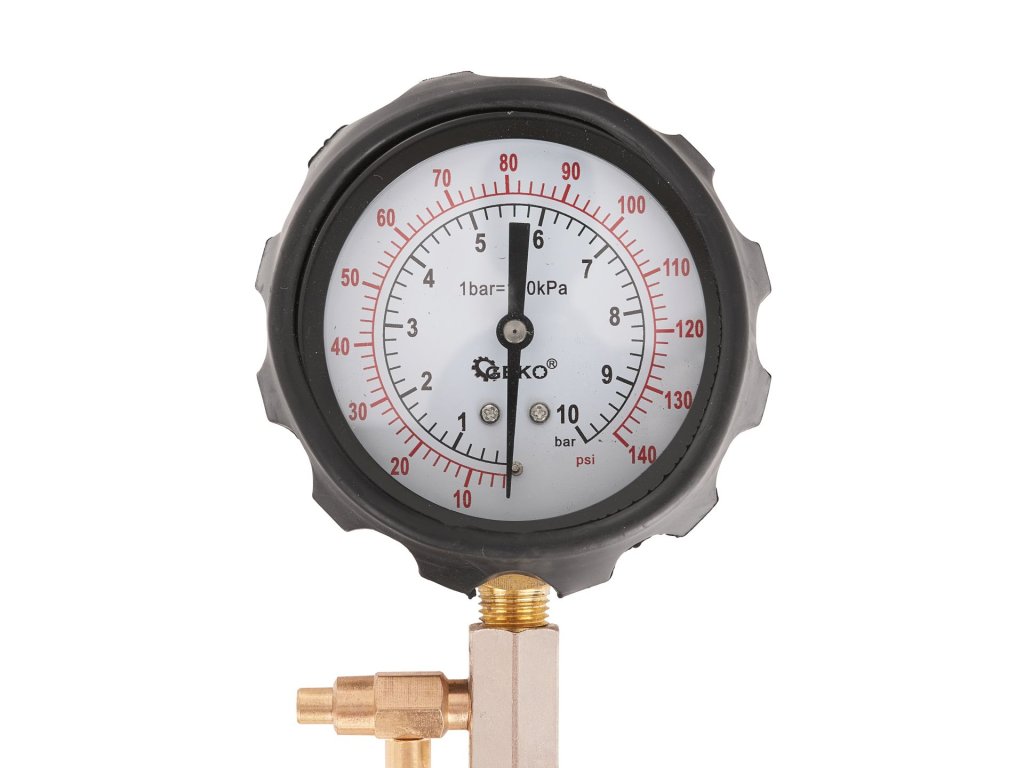 - Analóg manométer: Tartomány 0-10 bar (0-140 PSI)