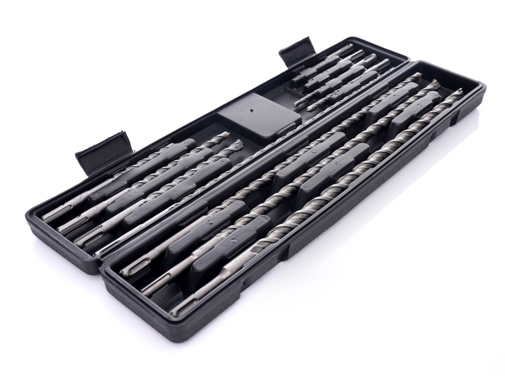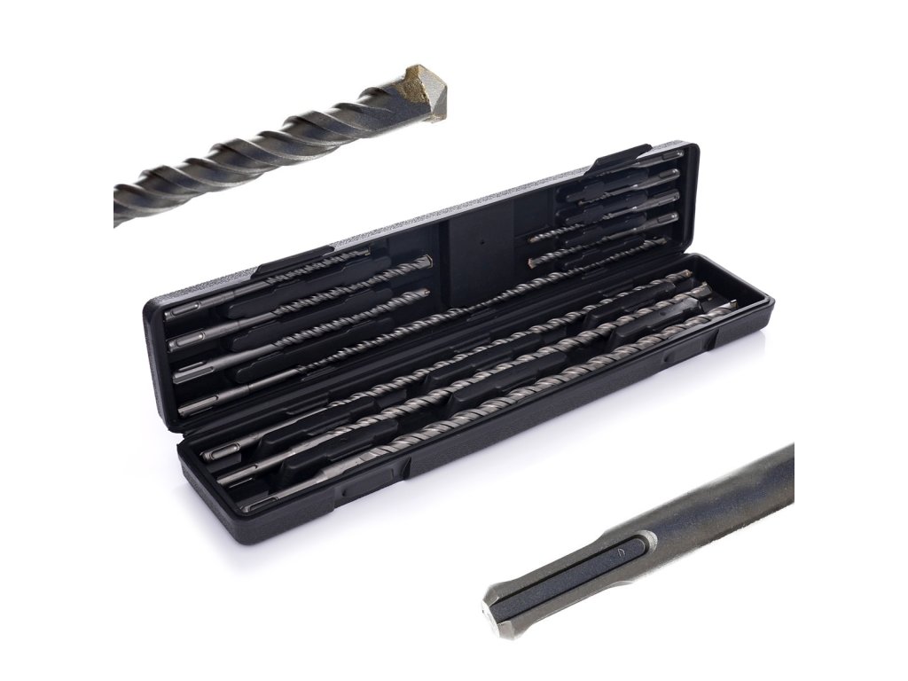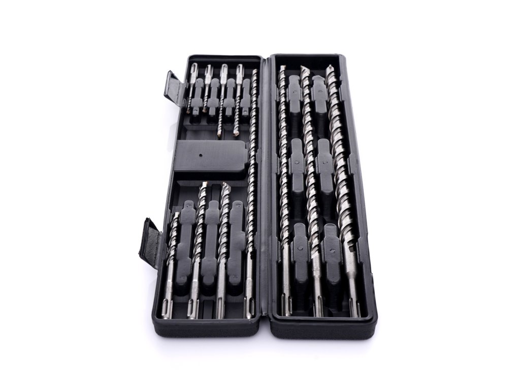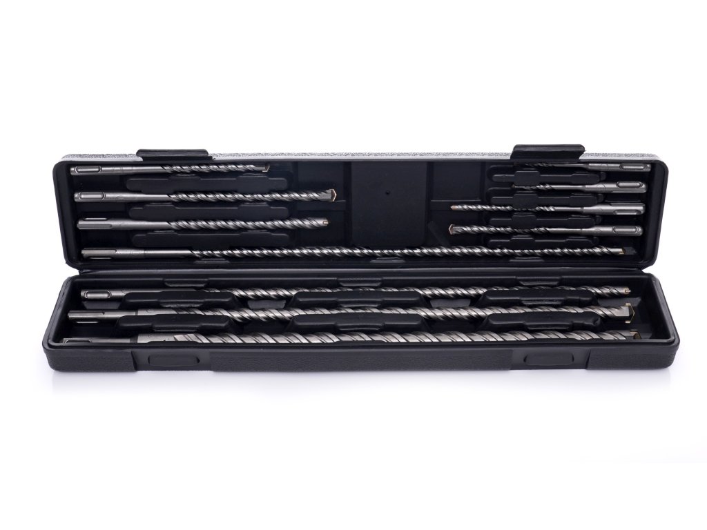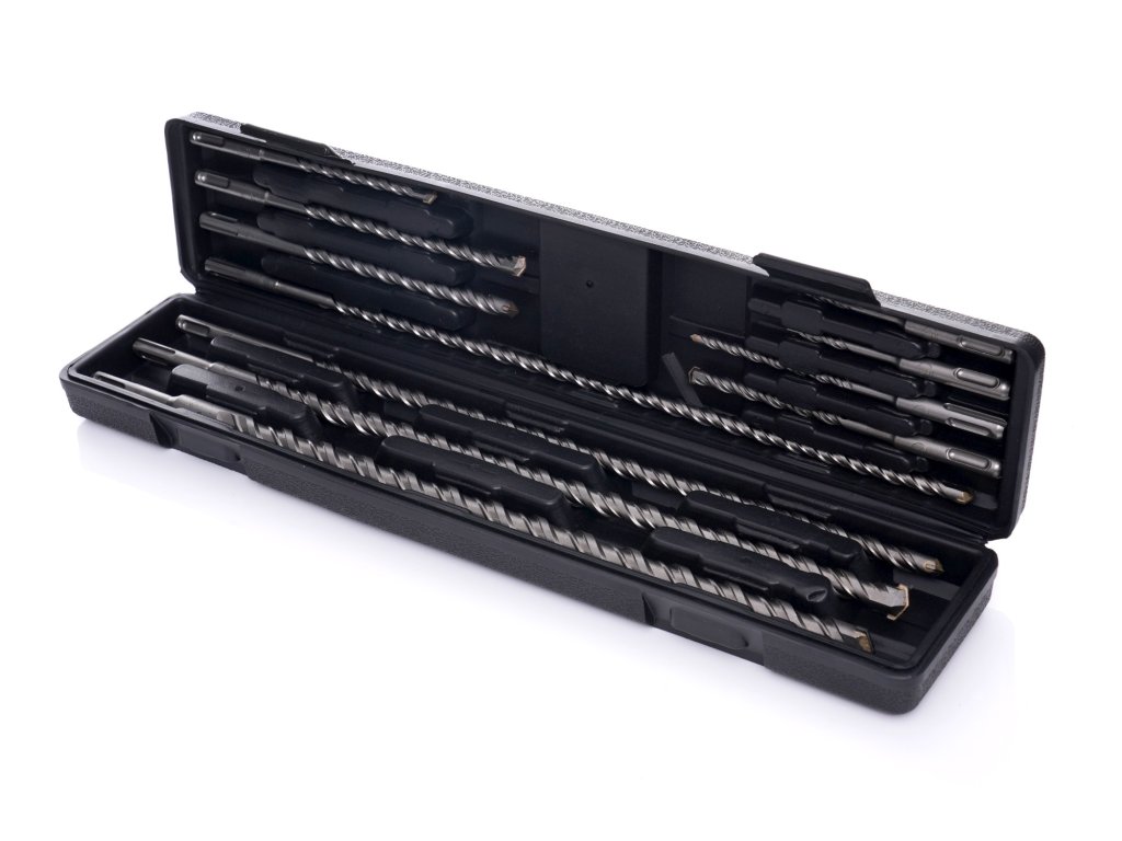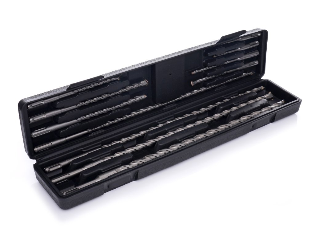 Az új karbid fejgeometria akár 20%-kal hosszabb élettartamot és hatékonyságot garantál a korábbi modellekhez képest, így tökéletes eszközöket biztosít a vasbeton fúrásához is. A készletben praktikus tartó is található a fúrószárak könnyű tárolására és szállítására.