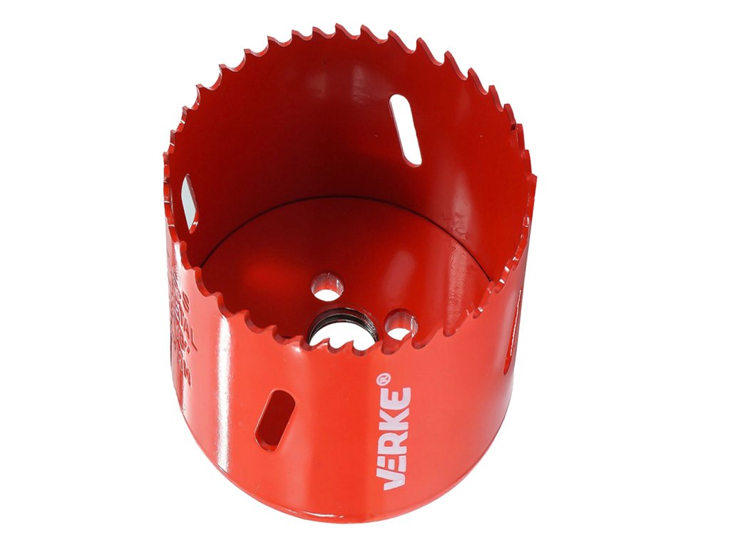 Bimetálos lyukasztó VERKE ideális fémek, lemezek, profilok, műanyagok, bútorlapok, gipszkarton lapok, forgácslapok és hasonlók fúrásához. Progresszív fogazásának és gyorsacél HSS anyagának köszönhetően lehetővé teszi a precíz lyukak hatékony fúrását.