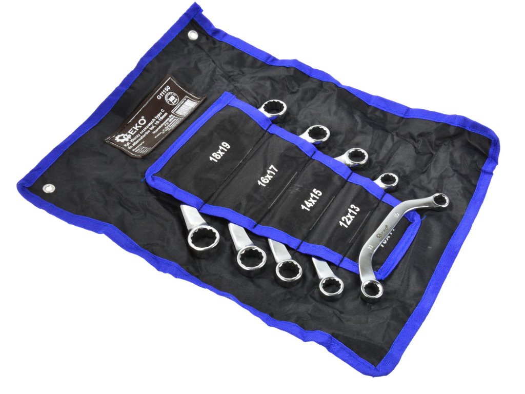 C típusú szemvilláskulcs készlet generátorokhoz 5 db 10-19 mm G11150 ideális megoldás a nehezen hozzáférhető helyeken végzett munkákhoz. A kulcsok magas minőségű króm-vanádium (CrV) acélból készültek, amely garantálja a mechanikai sérülésekkel szembeni fokozott ellenállást.