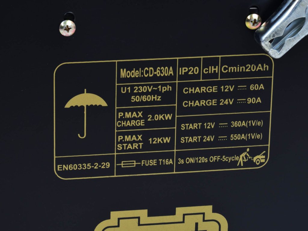 A töltő hőkapcsolóval van felszerelve, amely automatikusan lekapcsolja az áramkört, ha a transzformátor túlmelegszik. A CLASS 630 időzítővel is rendelkezik, amely a beállított időtartam lejárta után automatikusan lekapcsolja a készüléket, így megakadályozva az akkumulátor túltöltését a gyors töltés során. Ideális autók indítására benzin- és dízelmotorokkal, mint például teherautók, furgonok vagy mezőgazdasági gépek.
