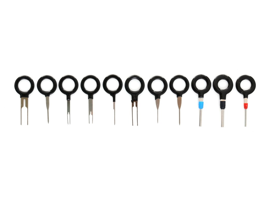 Csapkihúzó készlet 11 db a csapok és csatlakozók leszereléséhez. A markolat gumírozott, ami növeli a munka kényelmét. Ilyen készlet elengedhetetlen felszerelés minden villanyszerelőnek vagy elektronikai szakembernek. Nagyon hasznos az elektromos installációk módosításakor és javításakor autóban, motorkerékpárban, hajón, illetve otthon a háztartási készülékek, audió–video technika vagy számítógépek javításakor. A kihúzók ergonomikus formájúak, így a leszerelés nagyon egyszerű. Lehet dolgozni akár törött csappal vagy meghajlott érintkező rugóval a csatlakozóban. És ami a legfontosabb – a kihúzók nem károsítják a csapokat.
