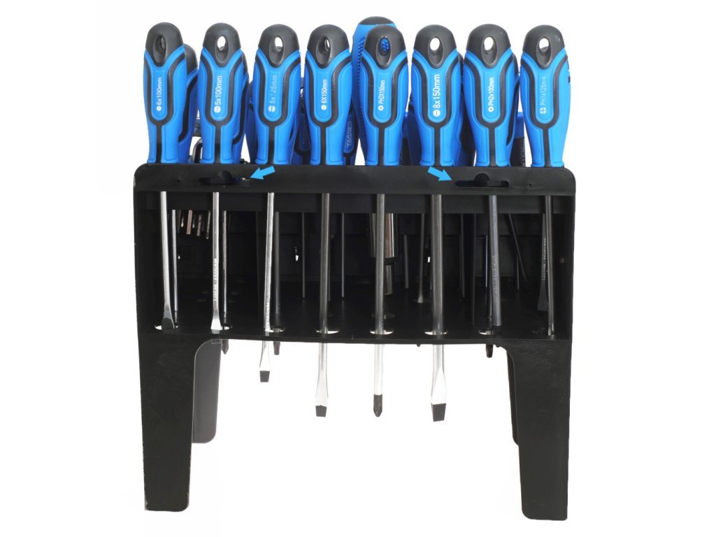 Ez a készlet kiválóan illik bármelyik garázsba vagy műhelybe. A mellékelt állvány segít rendet tartani a munkahelyen, és garantálja az eszközökhöz való könnyű hozzáférést :)