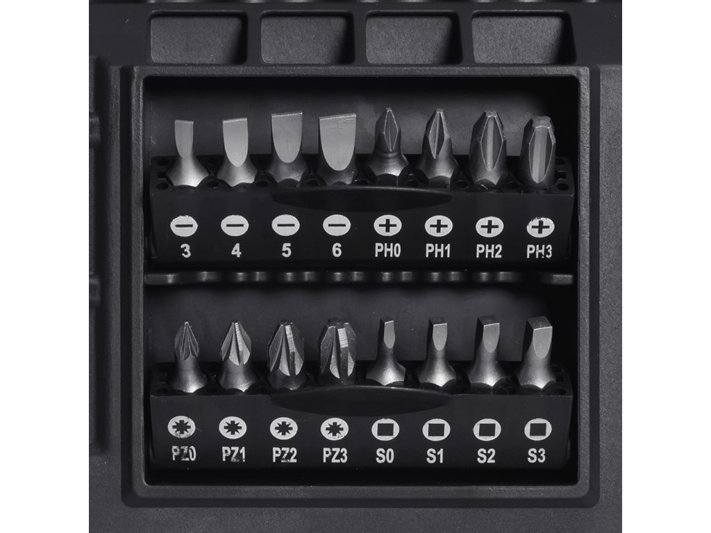 - kereszthornyos Phillips: PH2 x 38 mm, PH1 x 75 mm, PH2 x 100 mm, PH3 x 150 mm