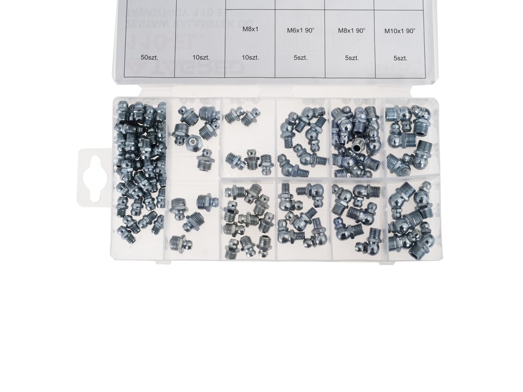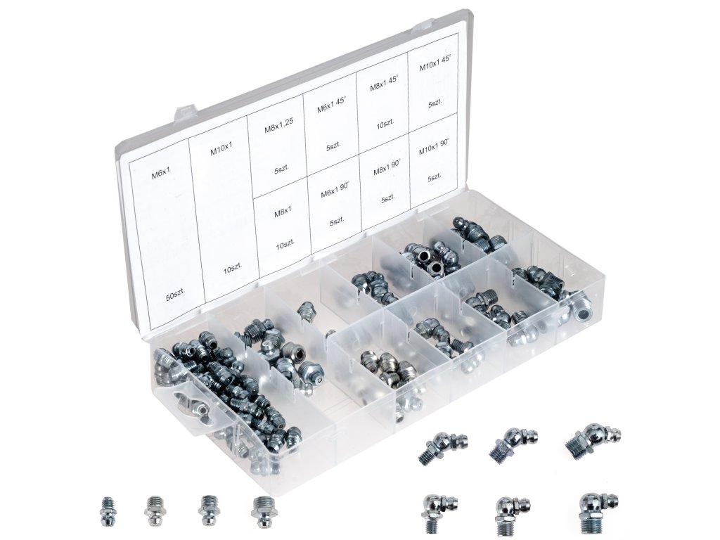 Csavarozható zsírzó 110 db: egyenes, 45° és 90°-os szögben