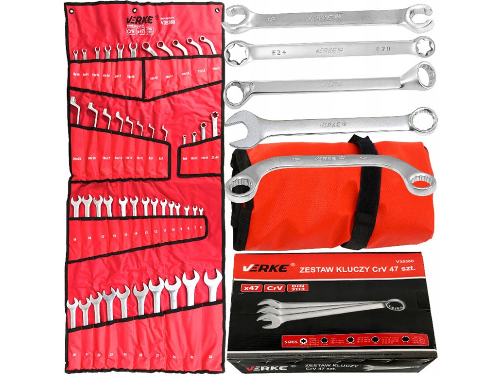 Csillag-villáskulcs készlet 47 db selyem tok Verke V35360