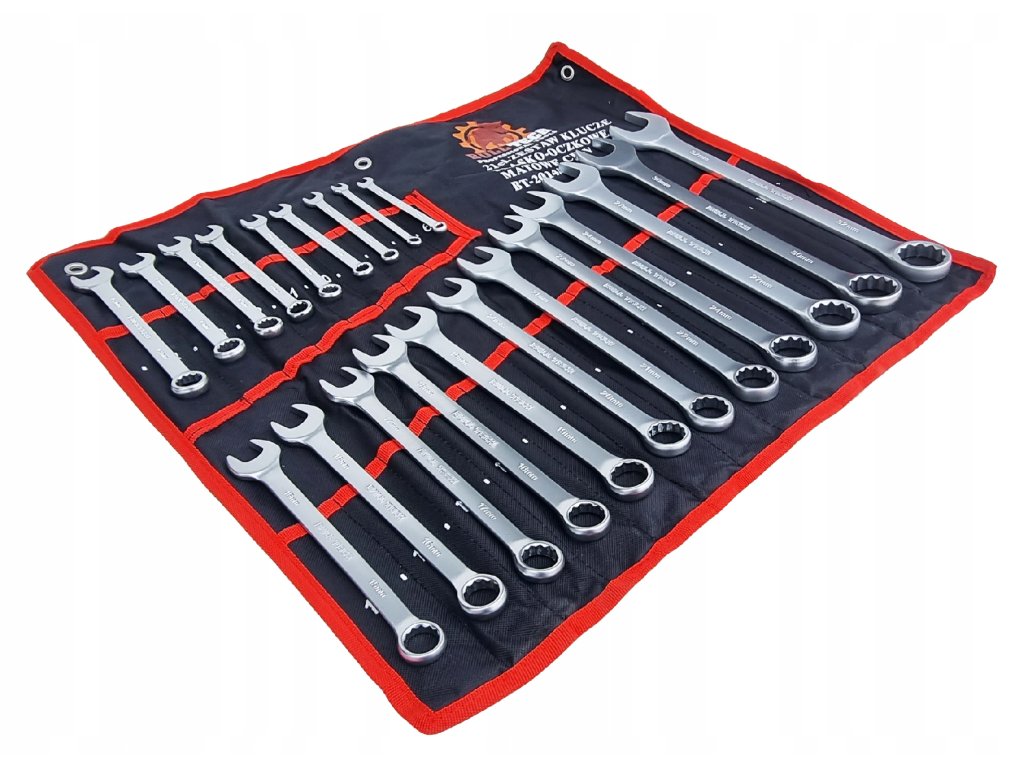 Csillag-villáskulcs készlet méretben 6–32 mm univerzális megoldást kínál minden szakember és hobbimechanikus számára. Króm-vanádium acélból készült, amely magas szilárdságot és tartósságot biztosít. A kulcsok egy praktikus textil tárolóban érkeznek, amely megkönnyíti a tárolást és a szerszámok védelmét. Ez a készlet ideális nehéz körülmények között végzett munkához, és tartalmazza az összes szükséges kulcsméretet.