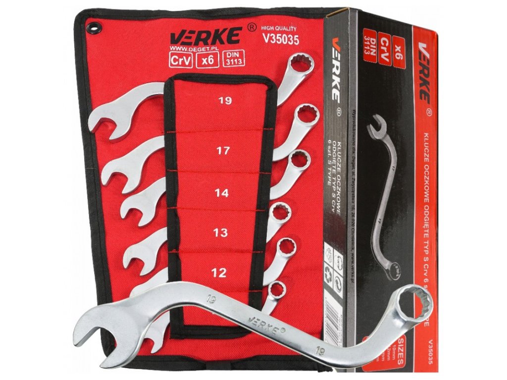 Csillag-villáskulcs készlet 6 db selyemfényű tokban Verke V35035