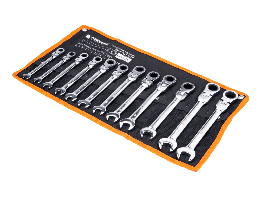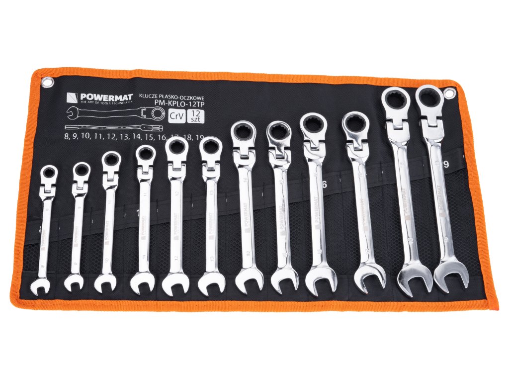 Csillag-villáskulcsok racsnival, hajlítható 8-19 mm, 12 db-os készlet PM-KPLO-12TP