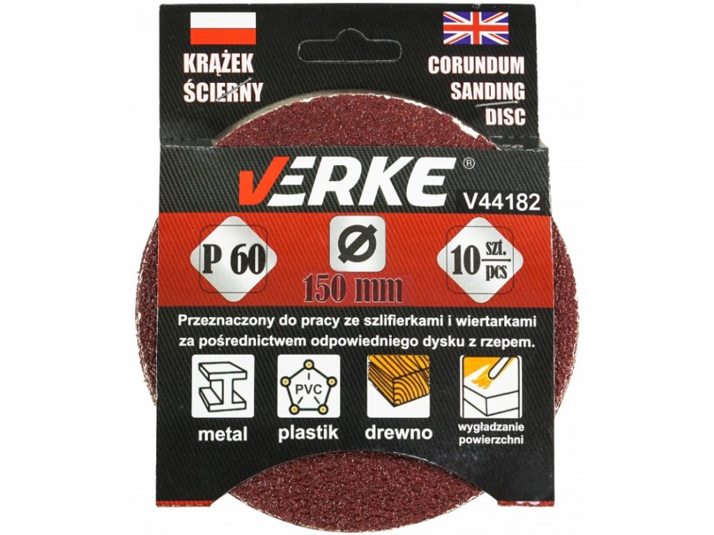 Csiszolókorong 150 mm P60 10 db VERKE V44182