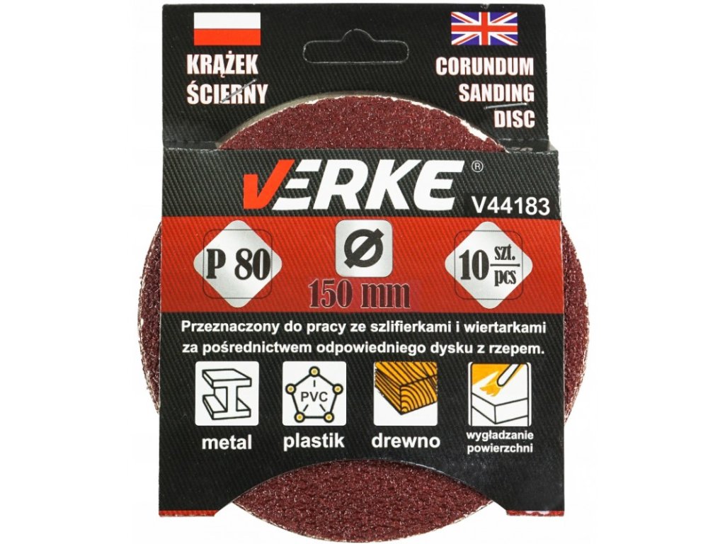 Csiszolókorong 150 mm P80, 10 db VERKE V44183