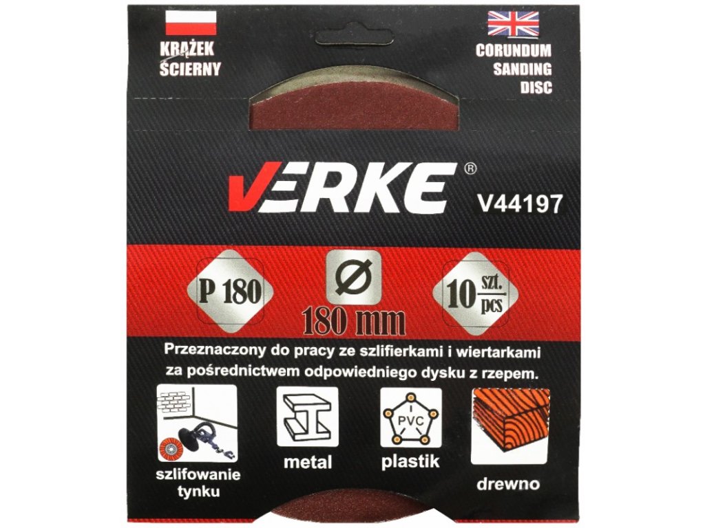 Csiszolókorong 180 mm P180, 10 db, Verke V44197