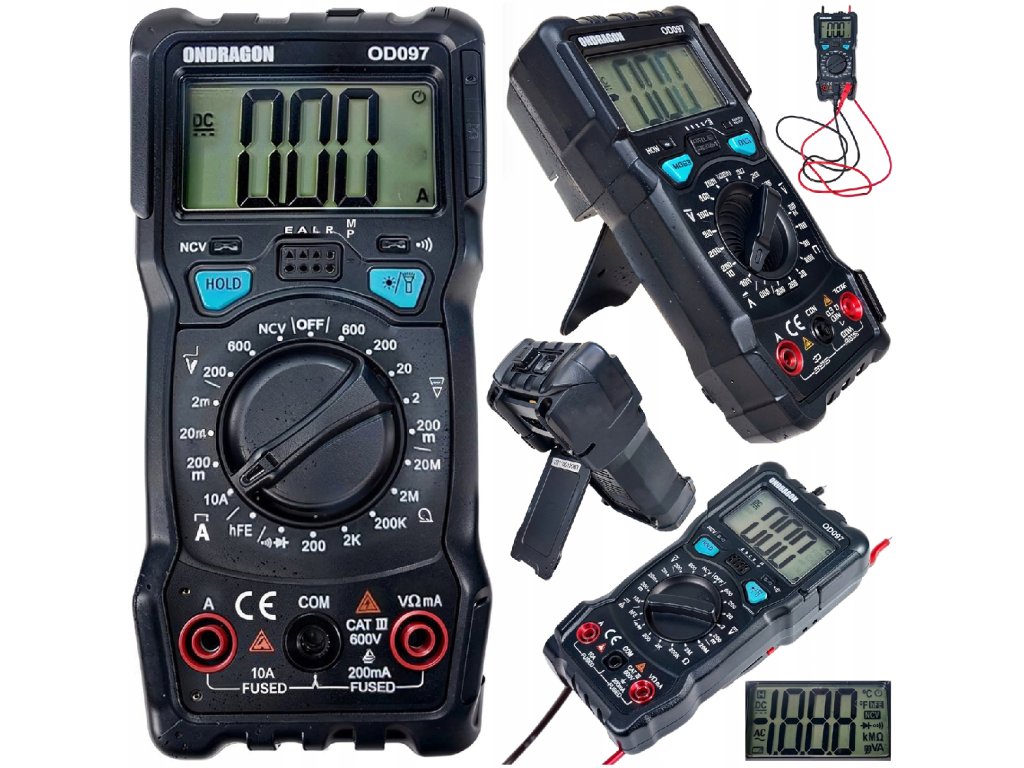 A gumibevonat és a biztonsági szondák megvédik az eszközt a magas áramok mérésénél. A multiméter emellett olyan funkciókkal rendelkezik, mint az automatikus kikapcsolás, az alacsony elem állapotának jelzése és a mért érték megállításának lehetősége.