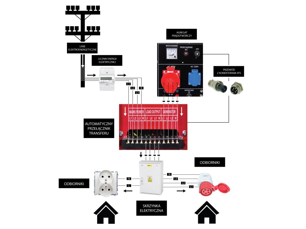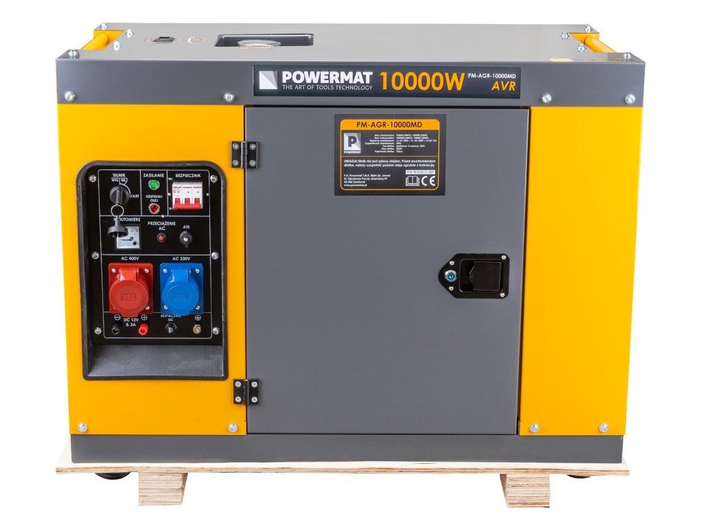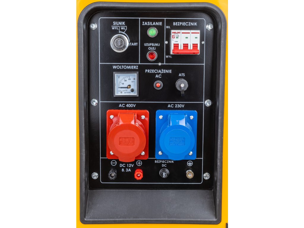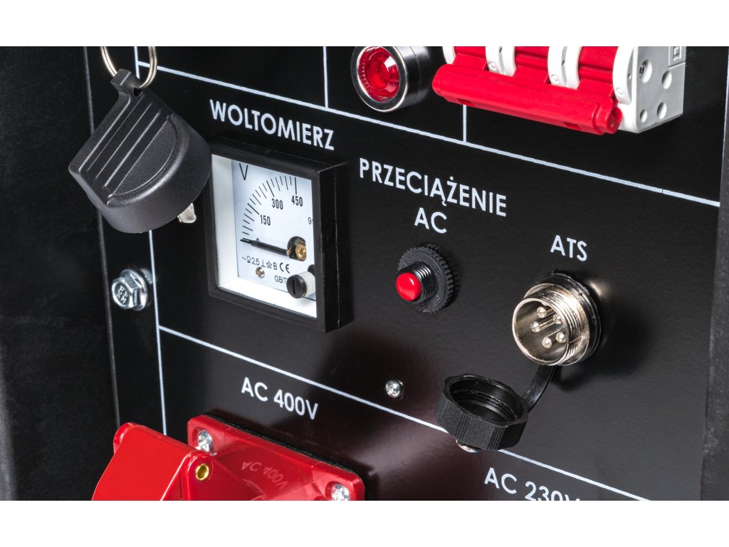 A generátor váltakozó áramot termel 230 V (1 aljzat), 400 V (1 aljzat) feszültségen, valamint egyenáramot 12 V (1 aljzat). Kiváló megoldás az elektromos áram hiányára a szabadban. Belső voltmérővel és biztosítékokkal van felszerelve. A generátor olajszint érzékelővel rendelkezik, amely automatikusan leállítja a motort, ha az olajszint túl alacsony. A generátor indítása elektromos módon (kulccsal) történik. Alkalmas ipari munkákhoz, építőiparhoz, kertekhez és parkokhoz elektromos szerszámok, szivattyúk és világítás üzemeltetéséhez.