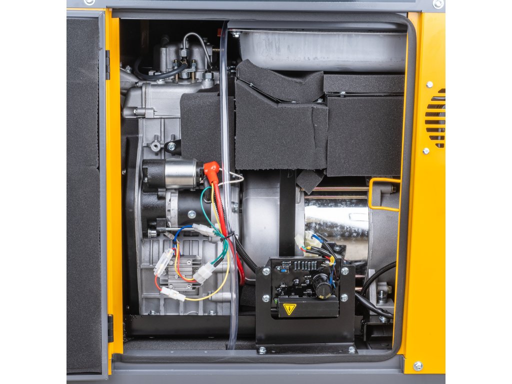A generátor burkolata és a motor zajszigetelt részei jelentősen csökkentik a zajszintet.