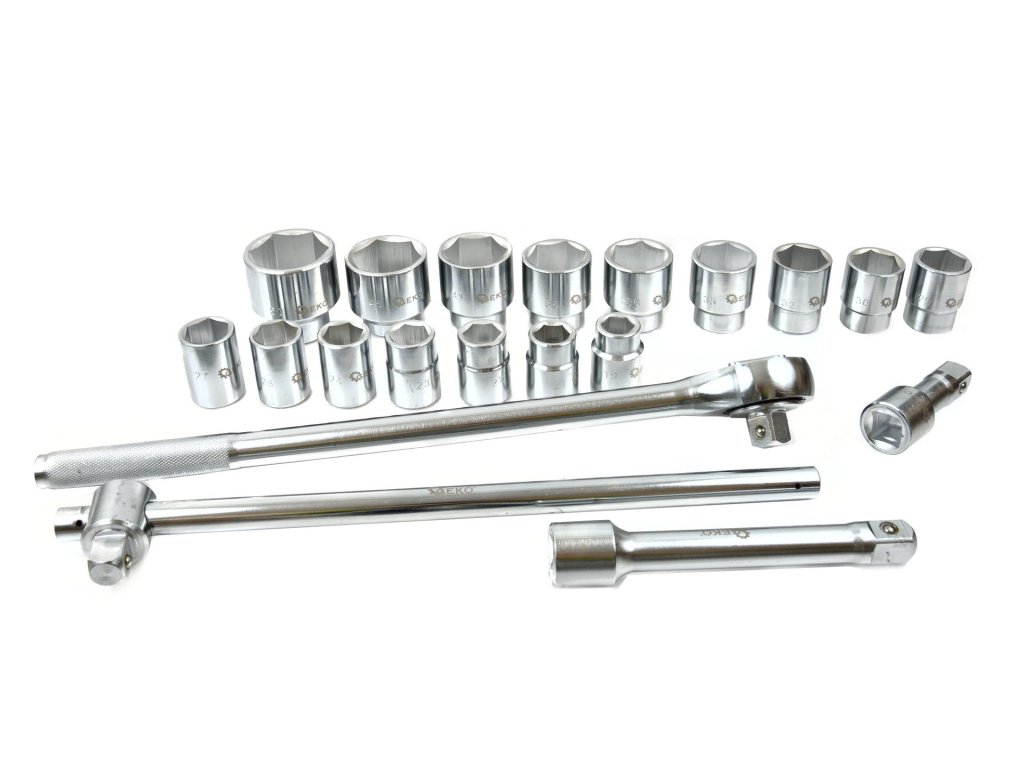 - 6szögletű dugókulcsok 3/4"-os méretekben: 19, 21, 22, 23, 24, 26, 27, 29, 30, 32, 35, 36, 38, 41, 46, 50 mm