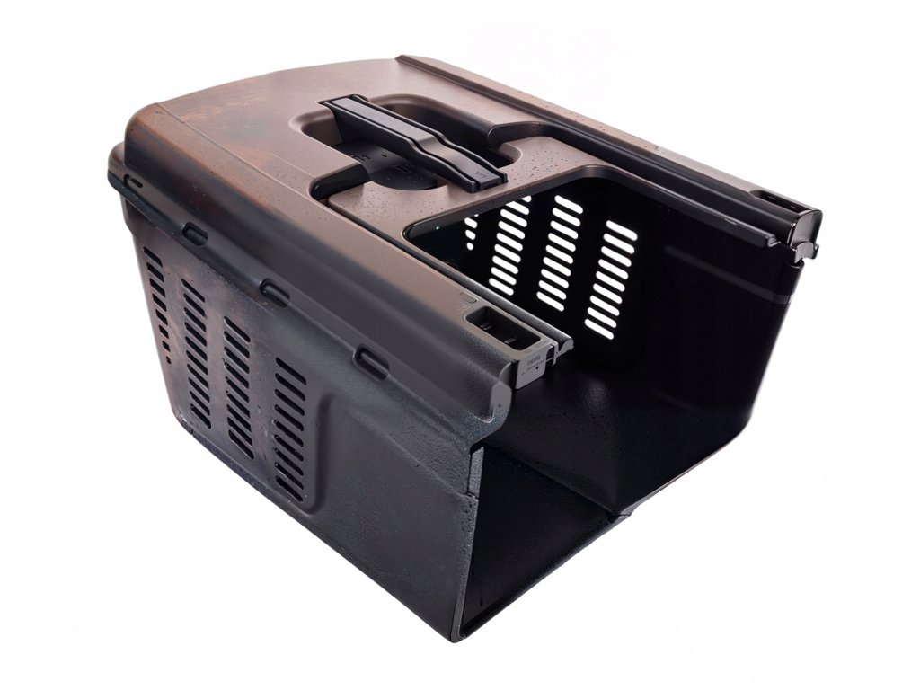 A 30 literes fűgyűjtő kosár könnyű műanyagból készült, egyszerűen rögzíthető, és a fogantyújak kényelmesen szállítható.
