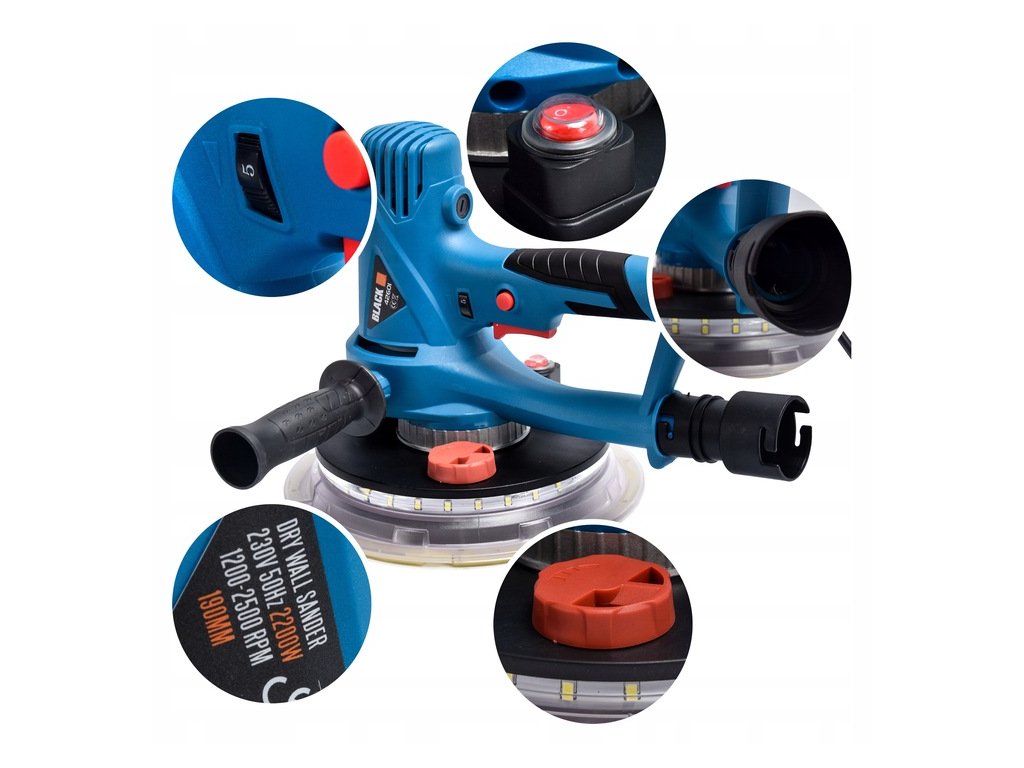 Elektrikus gipszkarton és vakolatcsiszoló 2200 W teljesítménnyel és 190 mm tárcsaátmérővel ideális eszköz a felületek gyors és hatékony megmunkálásához. LED világítással van ellátva a tárcsa peremén, amely lehetővé teszi a pontos munkát gyengén megvilágított helyiségekben is. Az ipari porszívóhoz való csatlakoztatásának és a porzsáknak köszönhetően a csiszolás során minimálisra csökkenti a port. A csiszoló folyamatos indítással és fordulatszám-szabályozással rendelkezik, amely biztosítja az anyagnak megfelelő optimális alkalmazkodást és a biztonságos munkát.