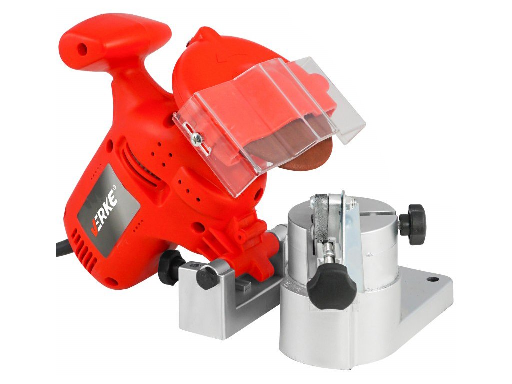 Elektrikus lánc élező VERKE egy erős és megbízható berendezés, amely motoros és elektromos fűrészek láncainak élezésére lett tervezve. A speciális felépítésű élező gép lehetővé teszi, hogy a lánc minden egyes fogát azonos, ismételt módon élezzük ki. Ez az élező egy erős 220 W teljesítményű motorral, 100 mm átmérőjű tárcsával és forgatható szorítóval van felszerelve, amely állítható élezési szöget biztosít, így egyszerű és hatékony láncok élezését teszi lehetővé.