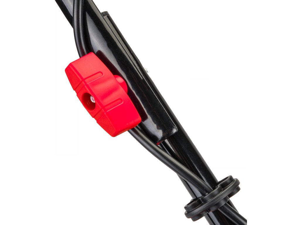 Ez a megoldás ideális elektromos fűnyírókhoz, csak annyit kell tennie, hogy ráhelyezi a vezetéket egy extra kampóra (a csomag része), és csatlakoztatja a dugót a fogantyúba integrált aljzatba.