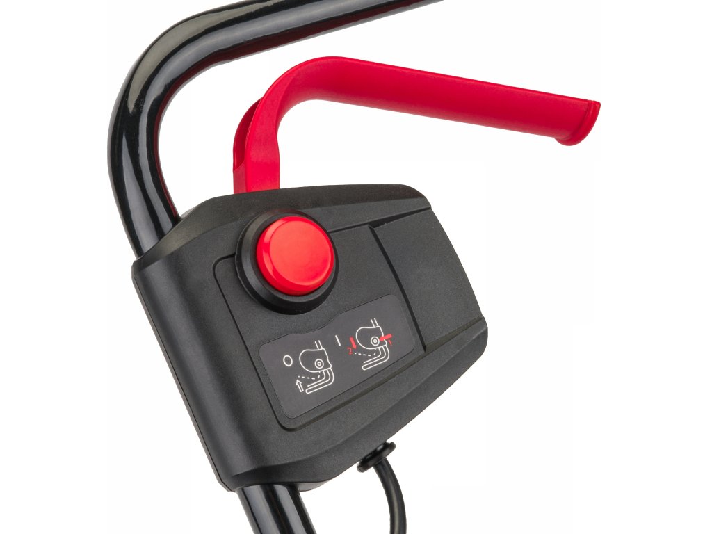 A tápkapcsoló fogantyú biztonsági gombbal van ellátva, amelyet meg kell nyomni a fűnyíró indítása előtt.