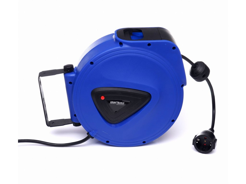 Elektromos kábelcsévélő 20 m KD4029 Kraft&Dele márkája ideális felszerelés minden otthonba, műhelybe és kertbe. Szilárd műanyag ház védi a kábelt és megakadályozza a túlmelegedést, míg a gyerekbiztos aljzat biztonságot nyújt.