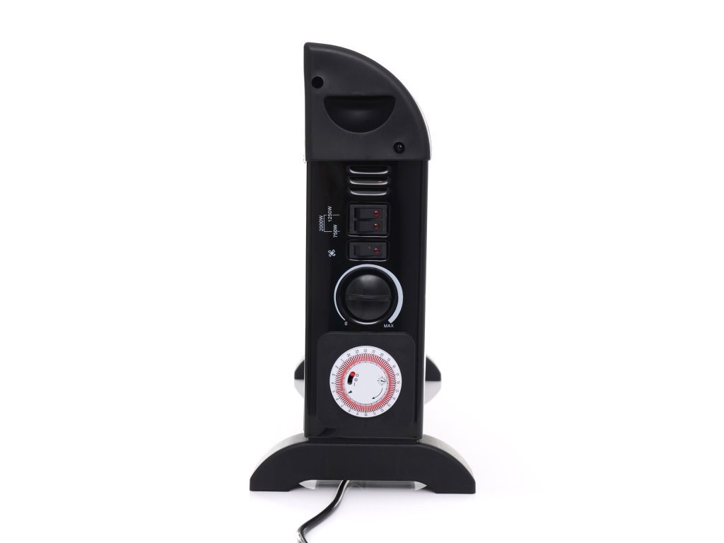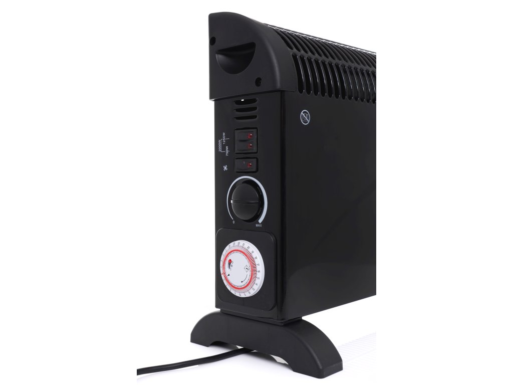 Elektromos konvektoros radiátor termosztáttal, TURBO ventilátor, időzítő, teljesítmény 2000W, fekete