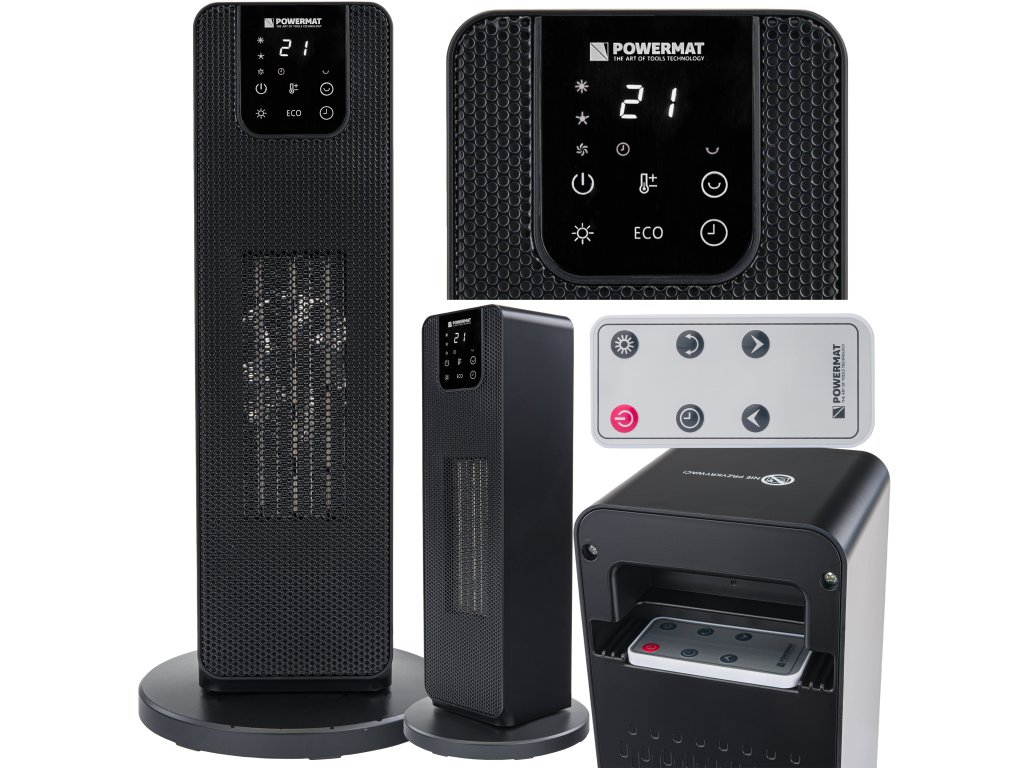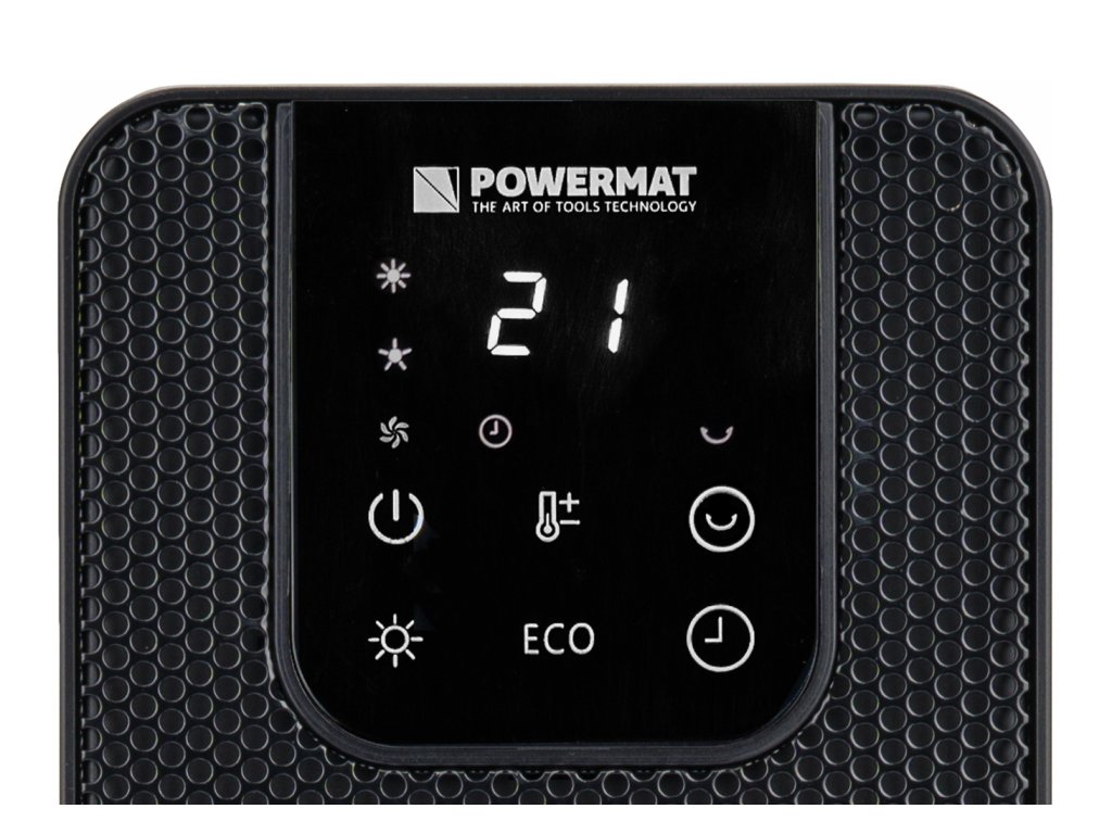 Teljesítmény 2000W | 2 teljesítményszint | ECO üzemmód | Oszcilláció | Érintő LCD vezérlőpanel | Túlfűtés elleni védelem | Időzítő | Léghőmérséklet szabályozó