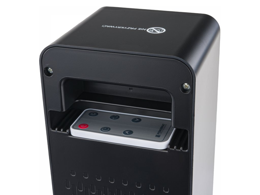 A radiátor hátsó részén egy bemélyedés található a távirányító kényelmes tárolására, valamint ergonómikus fogantyú a készülék könnyű szállításához.