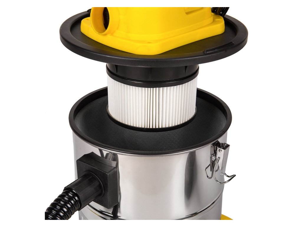 A hőálló rozsdamentes acél tartály 20 literes űrtartalma lehetővé teszi a hatékony munkavégzést anélkül, hogy gyakran ki kellene üríteni a hamut. A nagy kapacitás miatt az eszköz ipari porszívóként is működhet.