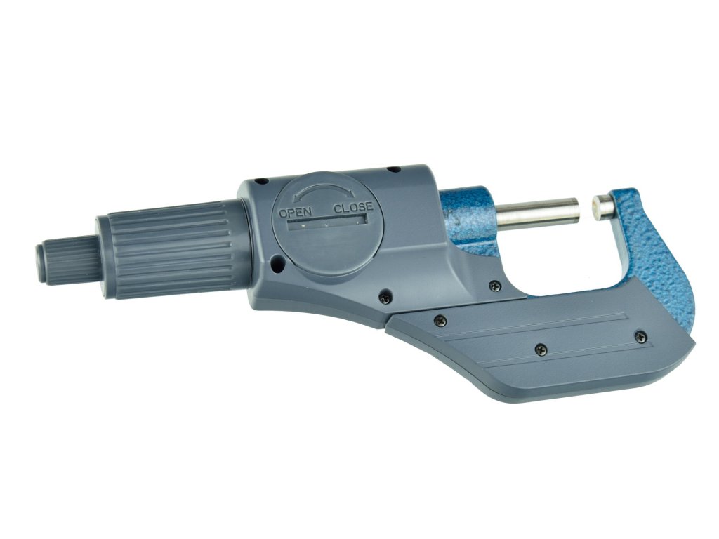 A készülék háza rögzítőcsúszkával van ellátva, amely biztosítja a fém ütköző pozícióját. A szett tartalmaz egy gumibevonatos acélgolyót is, amely lehetővé teszi a mikrométer mérési felületére való rögzítést, és megkönnyíti a kis felületű elemek mérését.