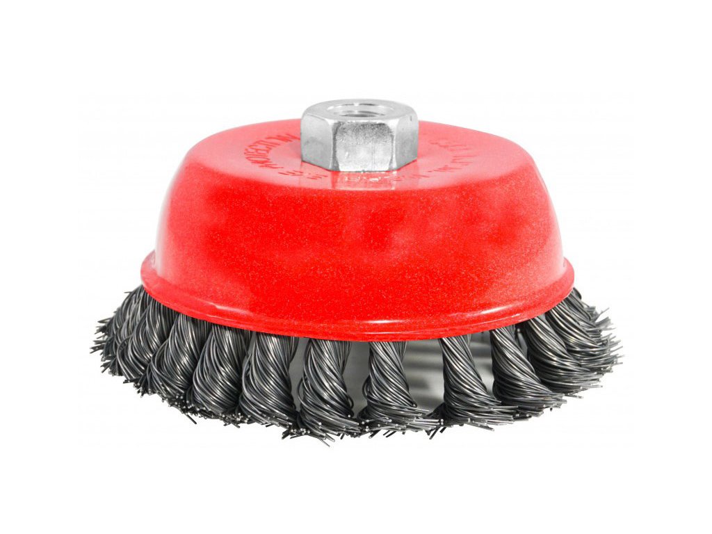 Acél fonott drót. Kiváló minőség, nagyon sűrű drót és magas hatékonyság a tisztítási és egyéb munkák során. Rozsda eltávolítására, okok eltávolítására, felületek tisztítására, bevonatok eltávolítására és hegesztési varratok tisztítására készült. A fonott kefék nagy merevséggel rendelkeznek, ami őket alkalmassá teszi durva és befejező feladatok elvégzésére, valamint festett felületek vagy rozsda agresszív tisztítására.