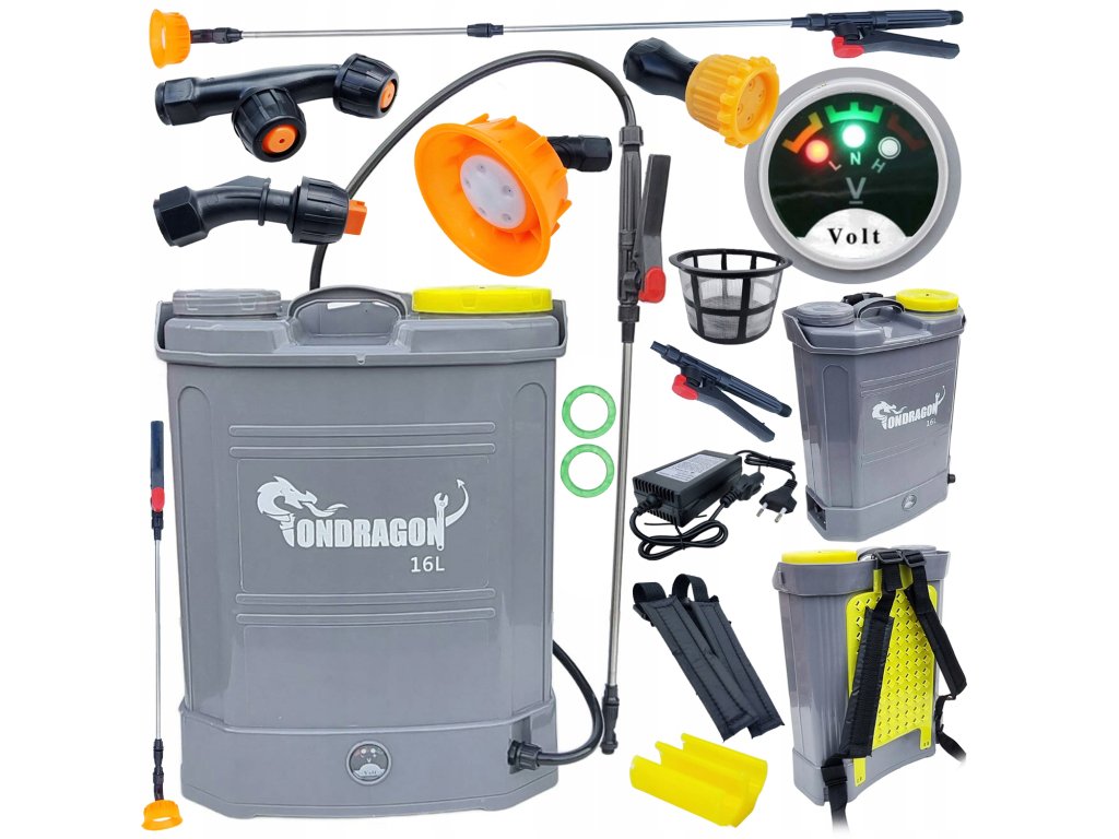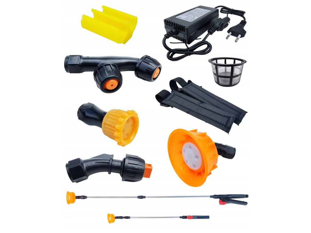 Ergonomikus AKU hátitáskás permetező 16L Nyomásos Teleszkópos 80cm + 4 fúvóka készlet