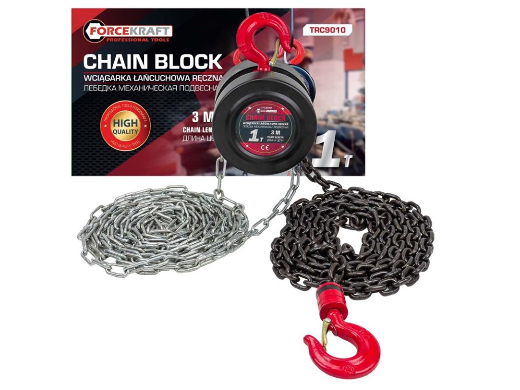 Erős kézi láncos emelő, teherbírás 1 t, lánc 3 m