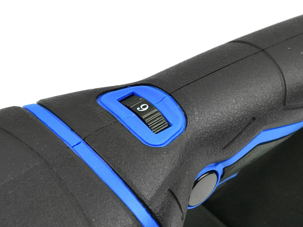 A csiszoló blokkolható kapcsolóval van felszerelve a folyamatos üzemeltetéshez, valamint fordulatszám-szabályzóval a pontos sebességbeállításhoz. A 125 mm átmérőjű csiszolókorong rugalmas habból készült, magas sűrűséggel, amely alkalmazkodik a csiszolt felületekhez, ezáltal pontosabb csiszolást biztosít.