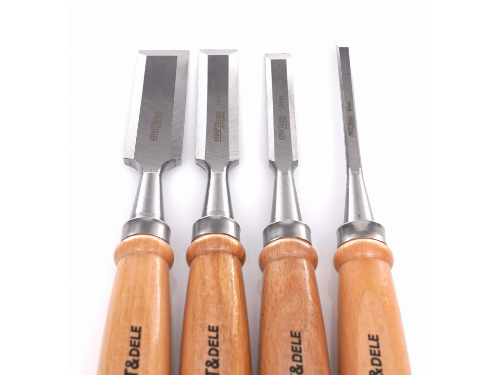 Professzionális favágóvésők 4 darabos készlet a KRAFT&DELE márkától, modell KD11770. Kifejezetten fa megmunkálására tervezve, különösen vágáshoz, faragáshoz, szobrászathoz és hasonló feladatokhoz.