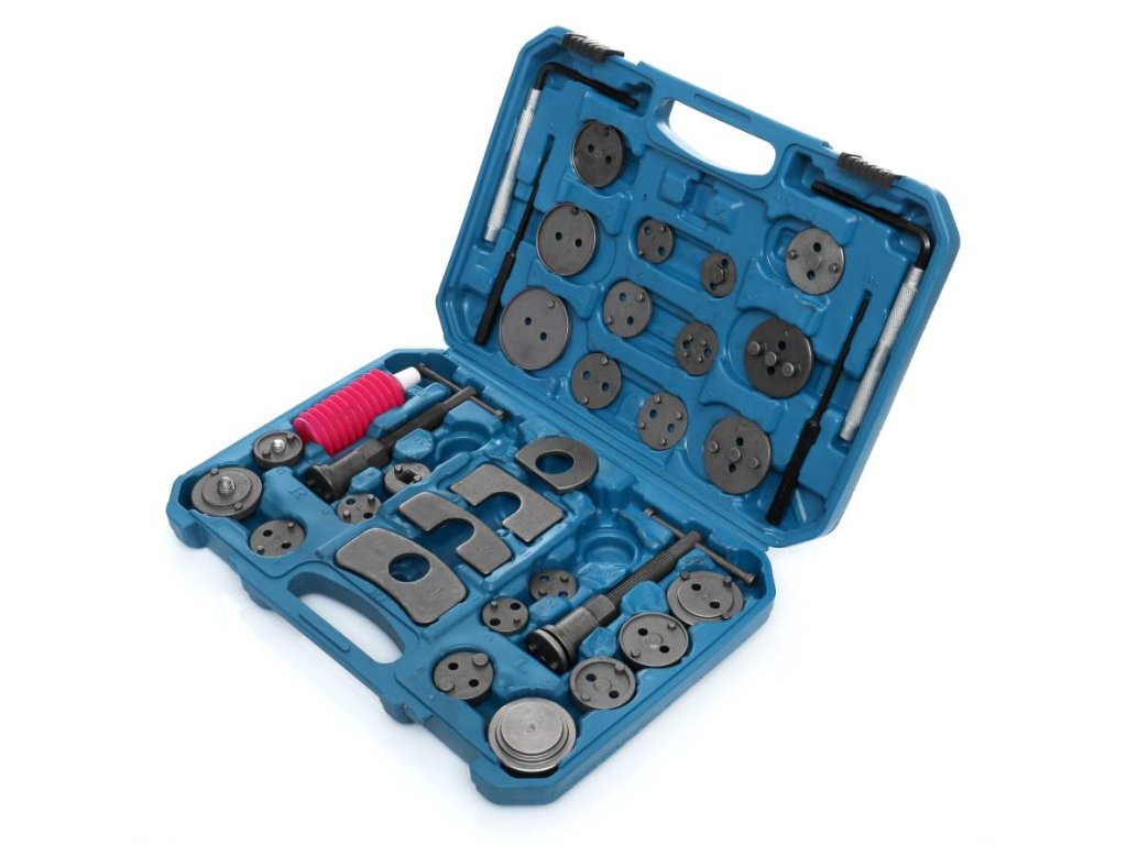 Fékdugattyú javító- és összenyomó készlet 35 db + bőrönd ideális megoldás minden szerelőnek és autórajongónak. Ez a komplex készlet hatékony dugattyúösszenyomást biztosít, és alkalmas a vezető autómárkákhoz, mint például: Acura, Alfa Romeo, Aston Martin, Audi, Austin, Austin-Healey, BMW, Bugatti, Chevrolet, Chrysler, Citroën, Daewoo, Daihatsu, Dodge, Ferrari, Fiat, Ford, GM, GMC, Honda, Hyundai, Infiniti, Isuzu, Jaguar, Jeep, Kia, Lancia, Land Rover, Lexus, Lincoln, Lotus, Maserati, Mazda, McLaren, Mercedes-Benz, Mercury, MG, MINI, Mitsubishi, Nissan, Opel, Peugeot, Proton, Renault, Rover, Saab, Saleen, Saturn, Scion, SEAT, Škoda, Smart, Subaru, Suzuki, Tata, Toyota, Triumph, TVR, Vauxhall, Volkswagen, Volvo.