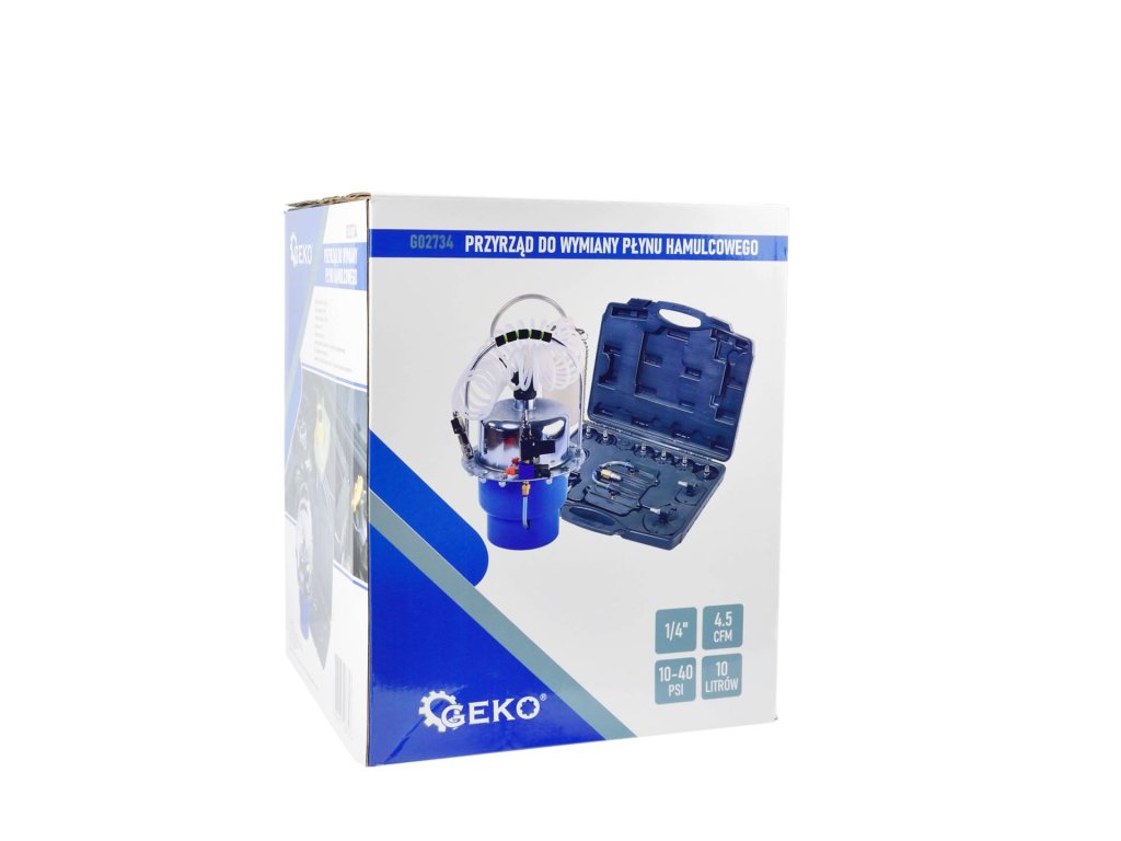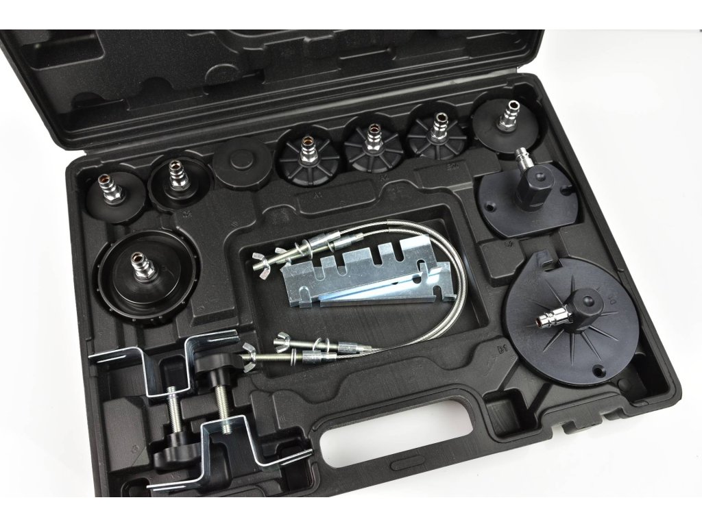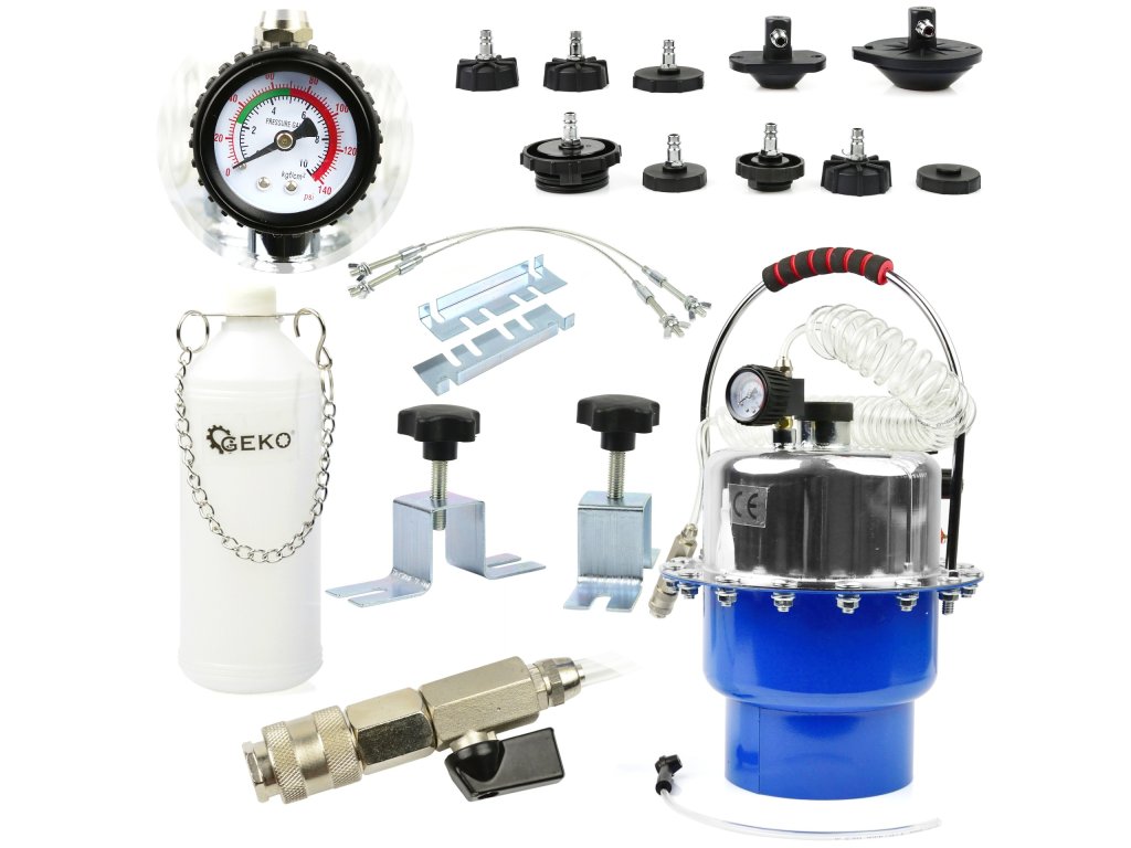 A fékfolyadék-csere szerszám egy praktikus eszköz, amely lehetővé teszi egy személy számára, hogy könnyen és gyorsan kicserélje a folyadékot a fékrendszerben és a hidraulikus kuplungban. Ezenkívül gyorsan biztosítja a fékrendszer légmentesítését. A csomag tartalmaz egy praktikus táskát, amely adapterek készletét tartalmazza, lehetővé téve a legtöbb fékrendszer karbantartását.