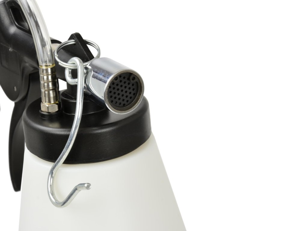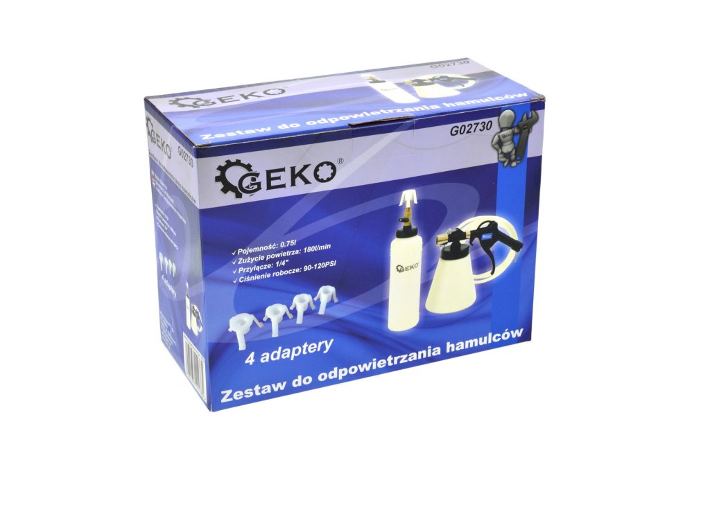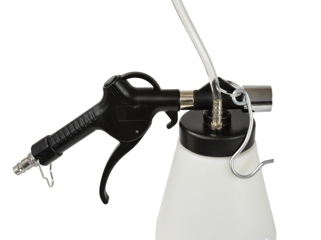 A fékfolyadék csere és a fék- valamint kuplungrendszer légtelenítéséhez készült szerszámkészlet professzionális használatra lett tervezve. Működési nyomása 6 - 12 bar, tartálykapacitása 0,75 liter, levegőfogyasztása 180 L/perc, vákuuma 60%, és 1/4" levegő csatlakozóval rendelkezik. A csomag tartalmaz egy kézi fogantyúval ellátott tartályt, 4 adaptert a tartályokhoz: 21 mm-től 30 mm-ig, 24 mm-től 32 mm-ig, 28 mm-től 37 mm-ig, 32 mm-től 41 mm-ig, egy 2 méteres tömlőt légtelenítő adapterrel, egy töltőpalackot, és egy 1/4" levegőellátó csatlakozót.