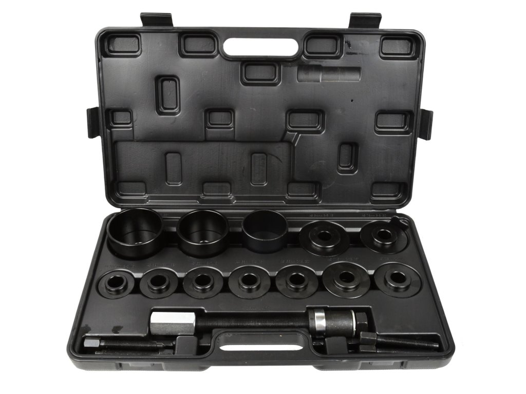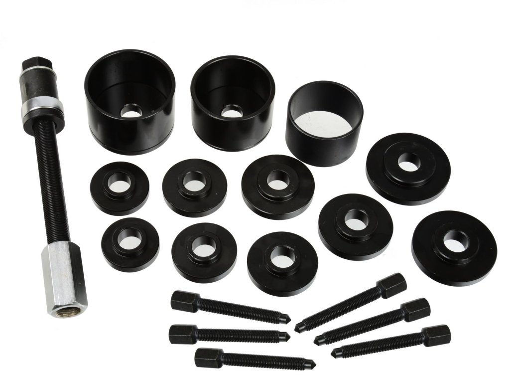 A előfogatószerelés és leszerelés készlete kifejezetten járművekhez készült, a csapágyak lehúzására szolgáló csavar segítségével. Ez a komplex felszerelés ideális szakemberek és otthoni szerelők számára, akik megbízható és hatékony eszközöket keresnek.