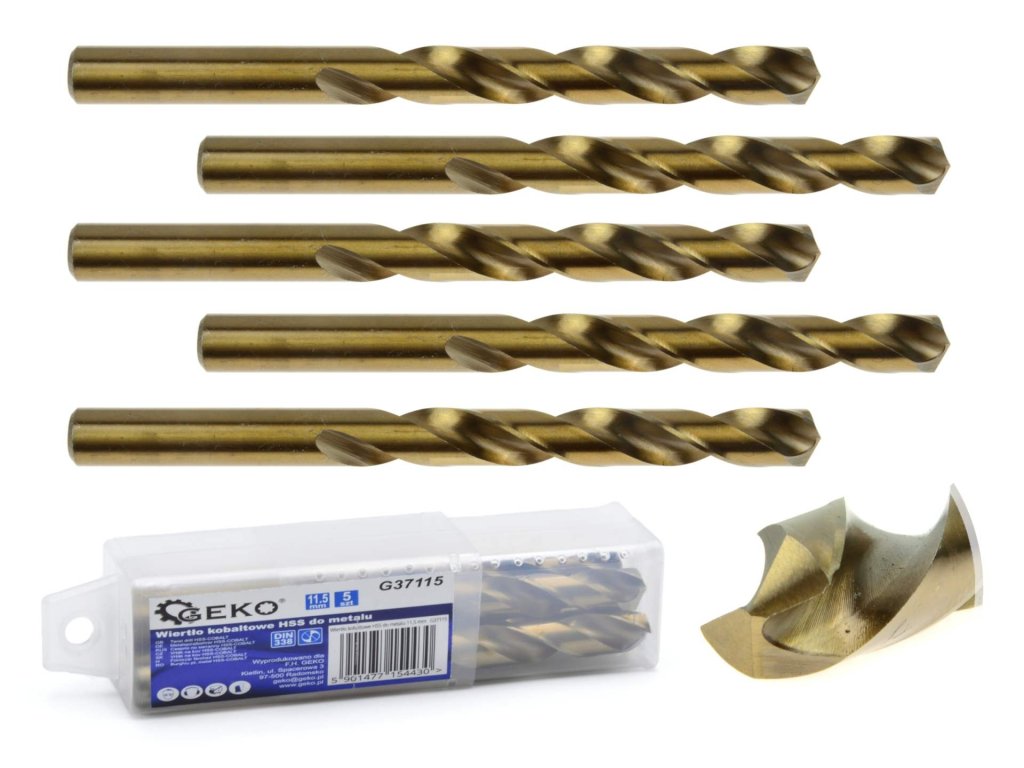 Kobalt fúró fémhez készült magas sebességű acélból HSS M35, 5 % kobalt hozzáadásával. A fúrók megfelelnek a DIN 338 szabványnak és hengeralakú száruk van. A kobalt ötvözet magas hőállóságot garantál, ezáltal jelentősen növeli a kopásállóságot. A tökéletesen élesített él még gyorsabb és pontosabb fúrást biztosít, míg a csiszolt spirál magas precizitást és gyors forgácseltávolítást garantál. A 125°-os szögben kétszakaszosan élezett csúcs lehetővé teszi a fúrást előzetes pontozás nélkül.