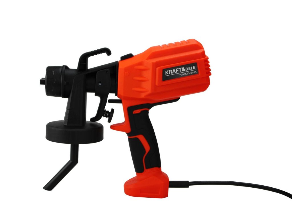 Professzionális festékszóró pisztoly Kraft&Dele márkájú KD2119 modell, amely ideális felületek festésére vízbázisú lakkokkal, akril alapozókkal, tömítőkkel, fémes és gyöngyház színekkel. A készülék révén elérhető nehezen hozzáférhető helyekre is, lehetővé teszi az egyenletes fedést egyenetlen, gömbölyű és egyéb felületeken. Lerövidíti és megkönnyíti a munkát.