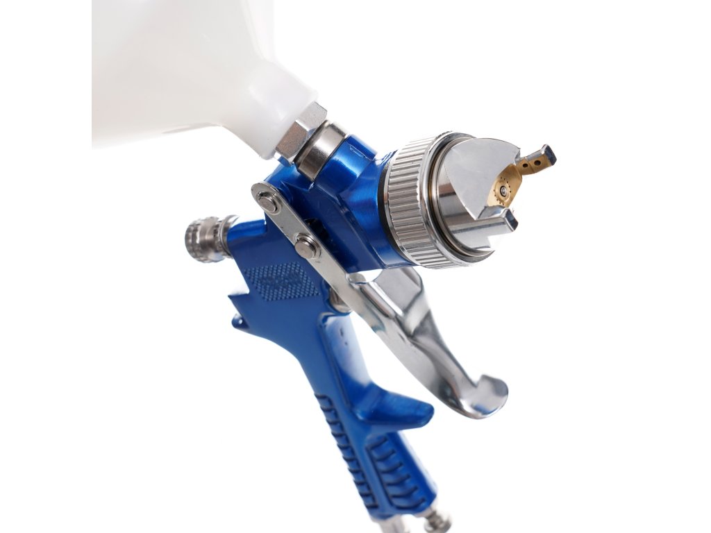 | Paraméterek: • Márka: Kraft&Dele • Modell: KD2092 • Légfogyasztás: 100–250 l/min • Tartálykapacitás: 600 ml • Fúvóka: 1,4 mm • Légáram folyamatos szabályozása |