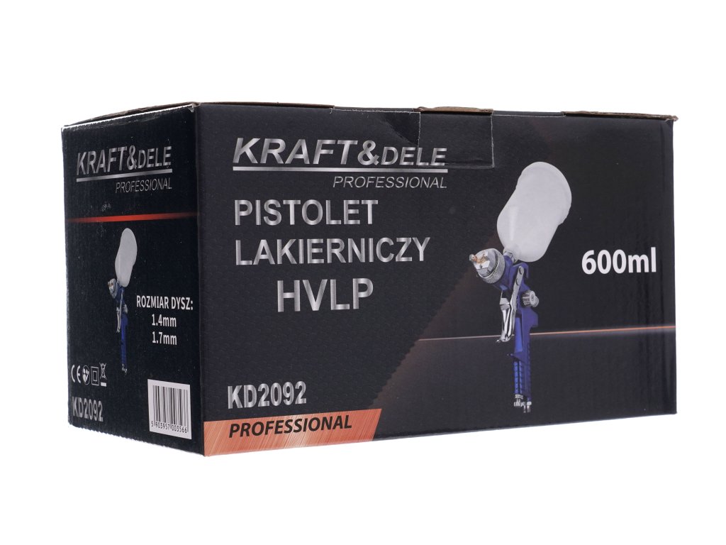 Festékszóró pisztoly HVLP 750 ml KD2092 a Kraft&Dele márkájú professzionális festékszóró pisztoly, amely a festék felhordási munkákhoz ideális lehet a lakkozó műhelyben, asztalos műhelyben, illetve otthoni műhelyben vagy garázsban.