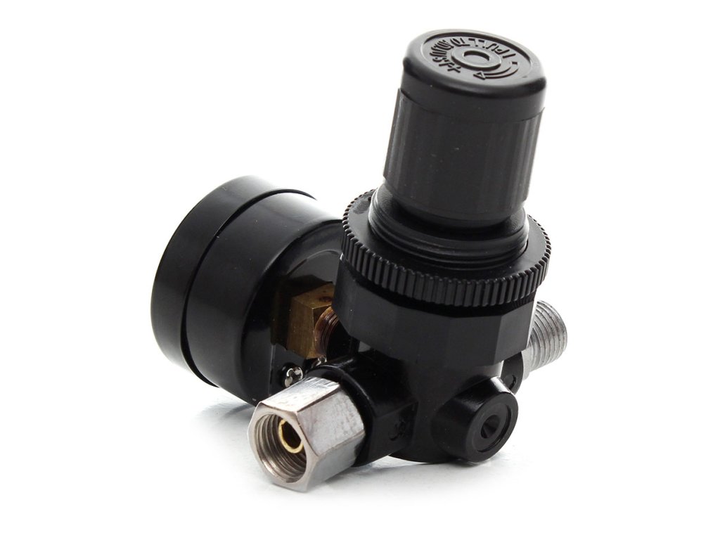 Festékszóró pisztoly nyomásszabályzó 1/4" csatlakozással készült magas minőségű anyagokból, és manométerrel van ellátva, amely lehetővé teszi a nyomás egyszerű nyomon követését és beállítását.