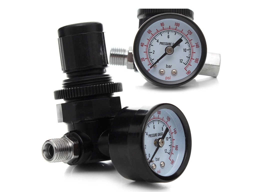 Festékszóró pisztoly nyomásszabályzó 1/4" csatlakozóval és manométerrel