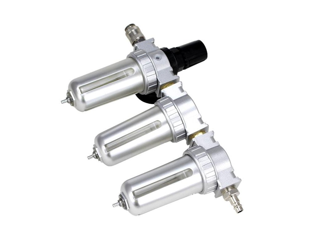 Szakmai légszűrő vízleválasztó funkcióval, festőipari és pneumatikus alkalmazásokhoz. Hatékonyan eltávolítja a vizet, olajat és egyéb szennyeződéseket a levegőből, tiszta és száraz munkakörnyezetet biztosít – elengedhetetlen a precíz festési és szórási feladatokhoz.