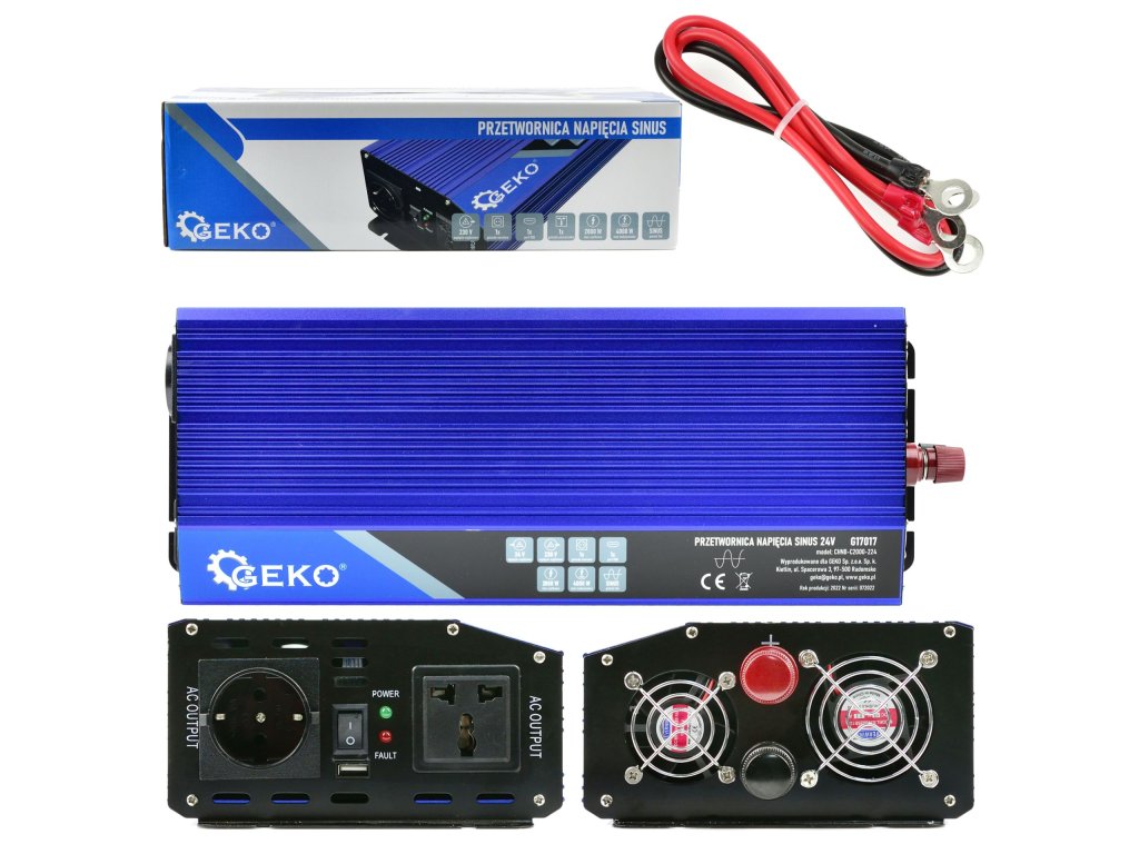 Ez a típusú átalakító alkalmas különböző eszközök, például elektromos szerszámok, szivattyúk, háztartási gépek, szórakoztatóelektronikai és audiovizuális berendezések táplálására. Ideális teherautókban és lakóautókban való használatra, ahol 24V-os elektromos rendszer található. Az átalakító F típusú aljzattal és univerzális aljzattal rendelkezik, a csomagban pedig egy akkumulátorkapcsoló kábel is található.