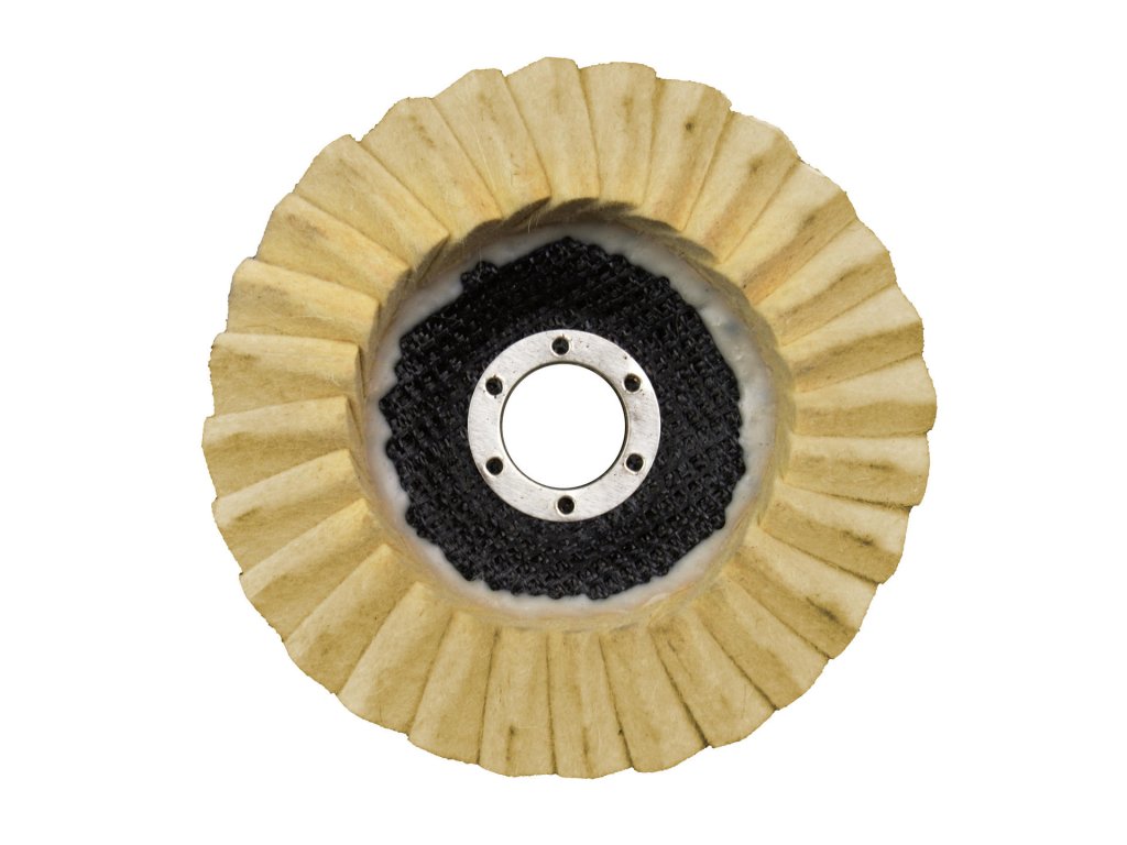 Filc csiszolókorong 125mm GEKO részletes polírozásra és precíz felületkezelésre lett tervezve. Ez a korong 8 mm vastag filc anyagból készült rétegekből áll, amelyeket ventilátorszerűen rögzítettek egy üvegszálas tányérra.